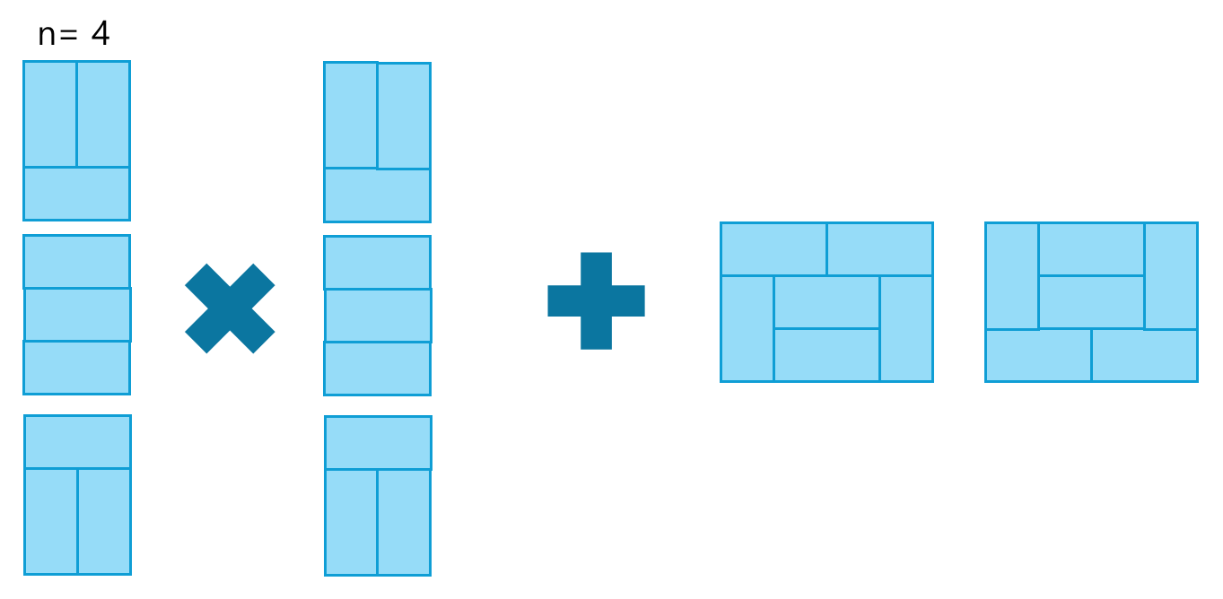 n=4라면, n=2의 조합을 섞어서 만든 9개(3개*3개)와 새롭게 추가되는 패턴 2개가 나오게 됩니다.