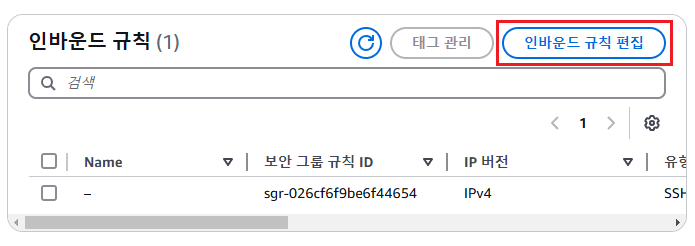 - 인바운드 규칙 편집을 선택함