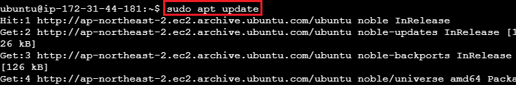 - 자바 파이썬등을 설치하는 apt를 최신 버전으로 업데이트 명령 입력하고 엔터