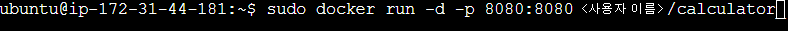 - 컨테이너가 외부와 소통할 수 있게 만들어 줌. 여기서 8080 포트는 컨테이너에서 실행중인 스프링부트의 포트 - <사용자 이름>/calculator_backend