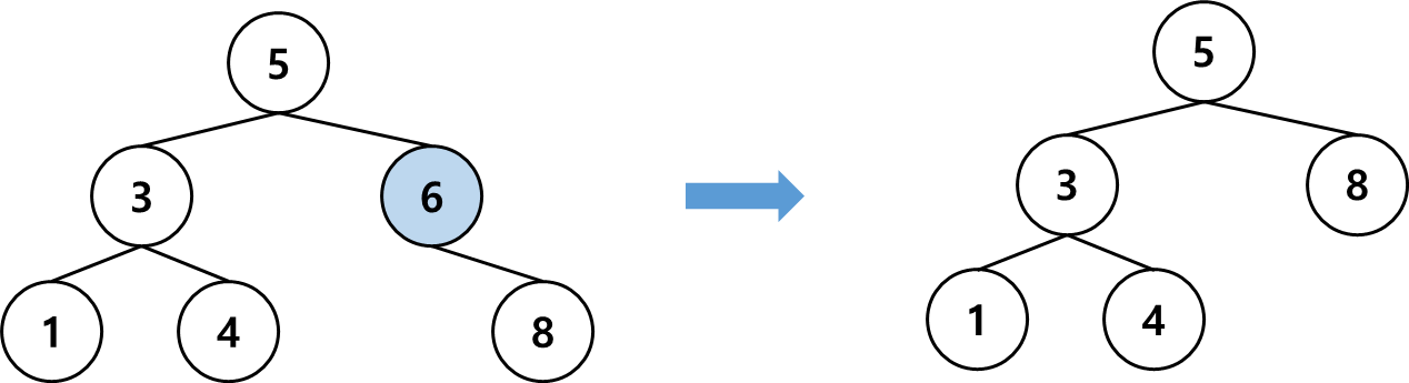 - 리프 노드이므로 자식이 없어 삭제되어도 아래쪽에는 영향을 미치지 않음.