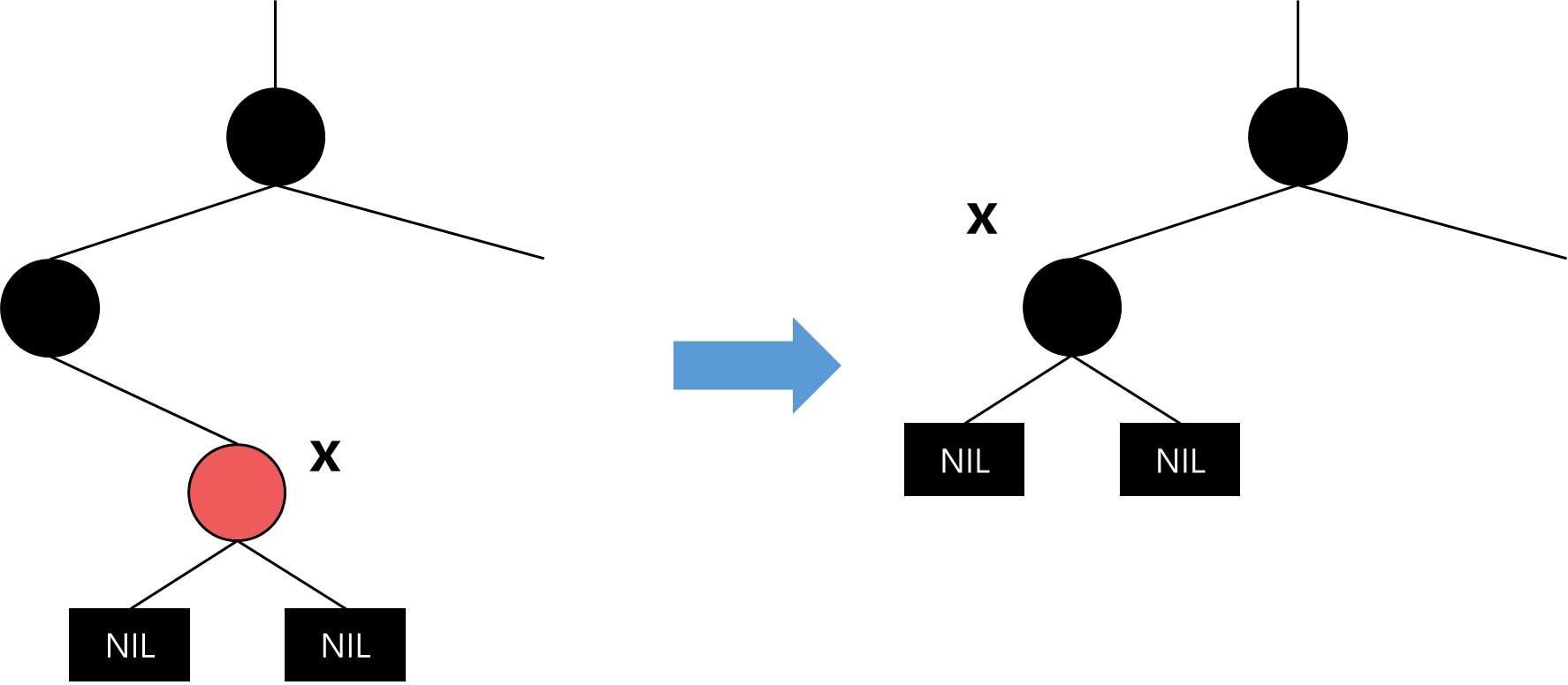 - 블랙이면 레드 블랙 특성이 모두 만족되고, 레드이면 처음과 똑같은 문제가 발생함.