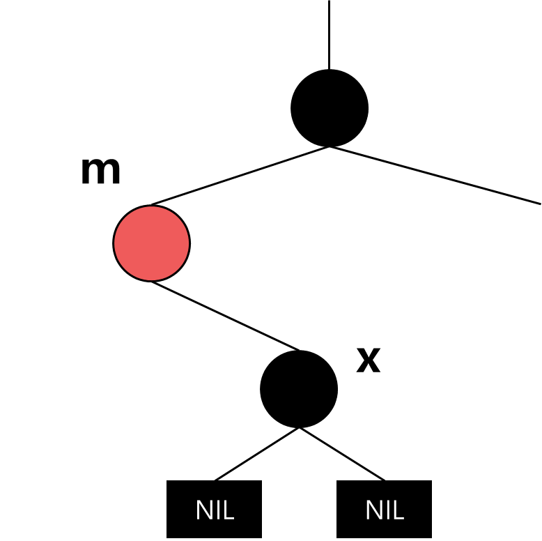 - m이 블랙이더라도 x가 레드이면 삭제 후 x의 색상을 블랙으로 바꾸어버리면 레드 블랙 특성을 만족함.